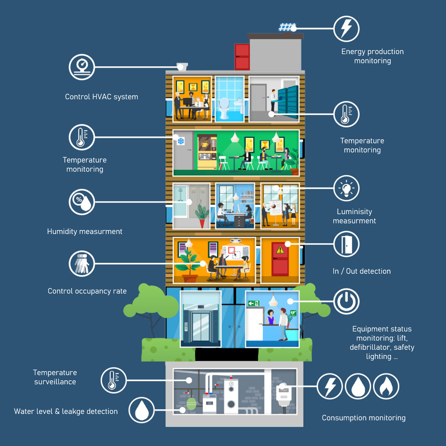Regulating the proper temperature for a large, diverse office population has always been complicated. It’s made worse by a lack of precise detail about who is using a space at any given time, and what type of indoor climate they prefer. SmartCom Technologies offers solutions that already track workspace usage patterns and adjust lighting and HVAC settings to suit a room’s occupants, as well as those expected to arrive soon. Our solutions allow you to avoid bad events like an intrusion to your local. Thanks to our IoT-based technologies, you will be notified in real-time for any motion, door or window opening in your locality, and you will be able to monitor it from your home thanks to smart cameras. Some stored products need to be at a certain temperature and you do not want to have a bad surprise of a dysfunctional HVAC system. SmartCom Technologies provides solutions where you can check the status of storage temperature in real-time and get notifications when anomaly events happen. SmartCom Technologies offers smart easy-to-install sensors that can monitor the machine status in real-time and also, thanks to machine learning technology, can predict the maintenance intervention time so that you will not be in a bad situation with a dysfunctional machine. Comfort: